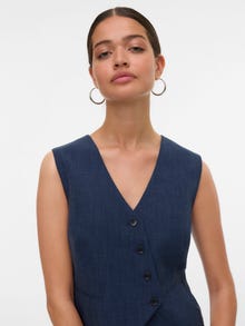 Osnovni kosi oblačil so nepogrešljivi skoraj v vsaki omari. Naši osnovni topi pomagajo povezati celoten videz in ta top ni nobena izjema. Nosite ga s srajco na vrhu, par sproščenih "mama" kavbojk in masivnimi škornji ter dobite sproščen in kul vsakdanji videz. - Vrsta izdelka : Asimetričen top - Vrat : V-izrez - Rokav : Brezrokavnik (B/R) - Zaključevanje : Zapenjanje na gumb - Žepi : Nefunkcionalni žepi - Podloga : Poliestrska podloga za udoben občutek - Prileganje : Običajno prileganje