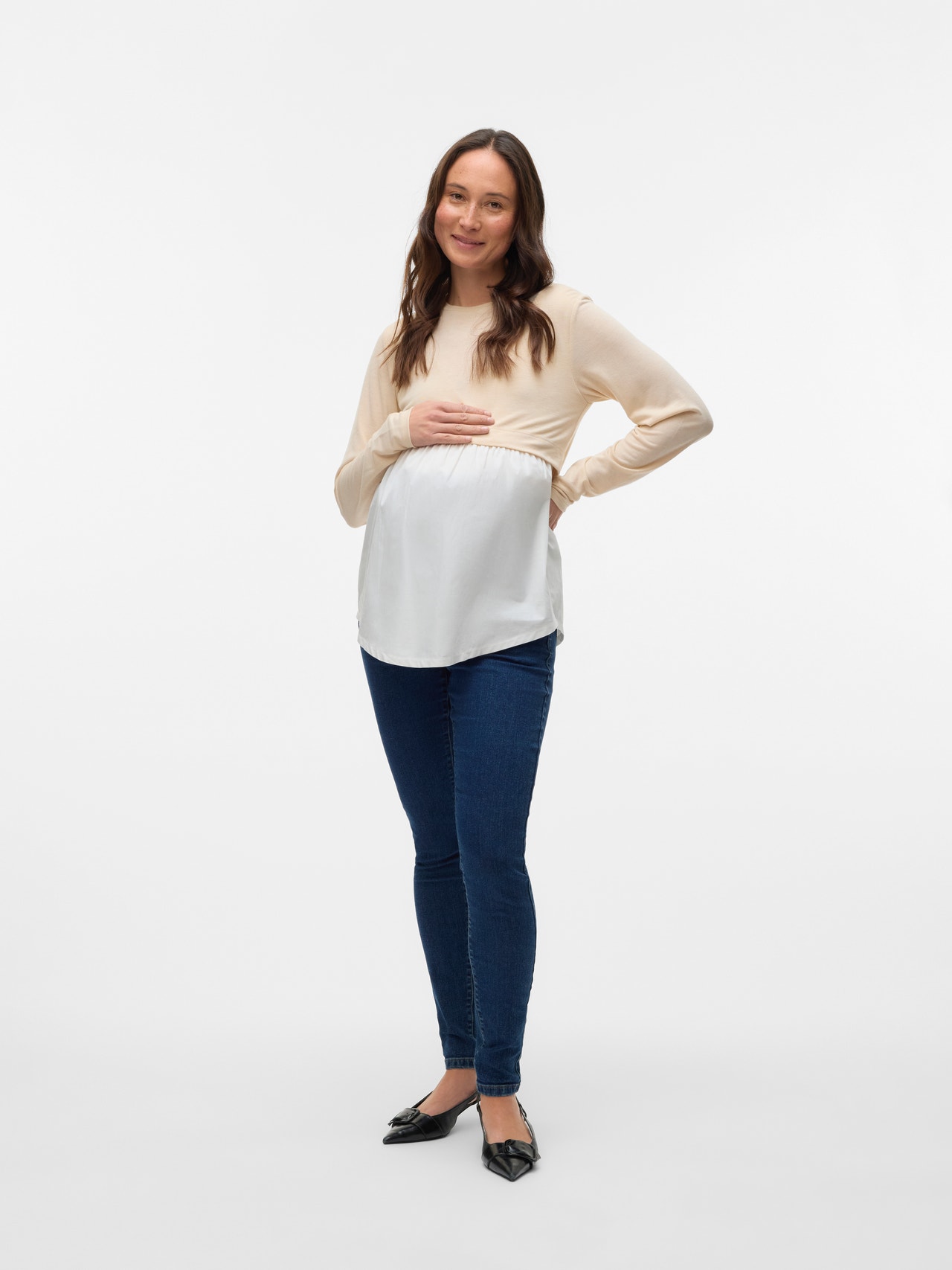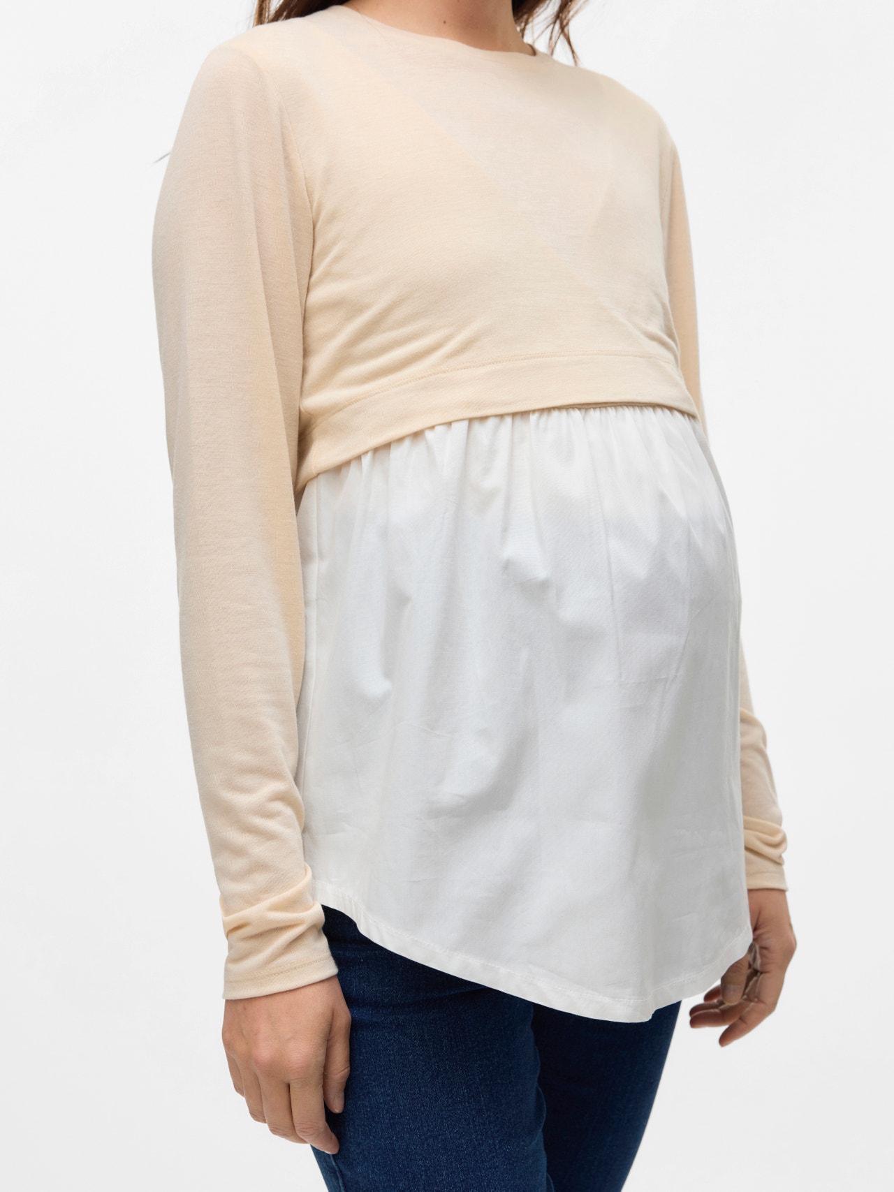 Obnovite svojo garderobo z mehkimi in elegantnimi 2-v-1 majicami in topi za nosečnost in dojenje. - Vrsta izdelka : Bluza - Vrat : Okrogel izrez - Rokav : Dolgi rokavi (D/R) - Prileganje : Običajno prileganje