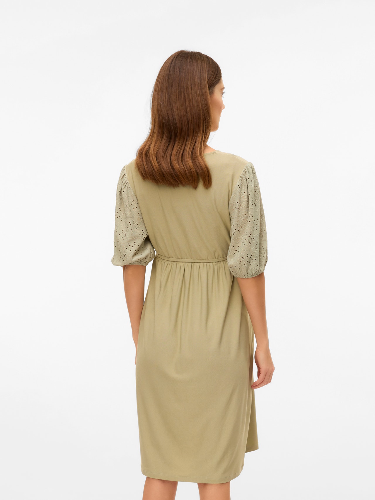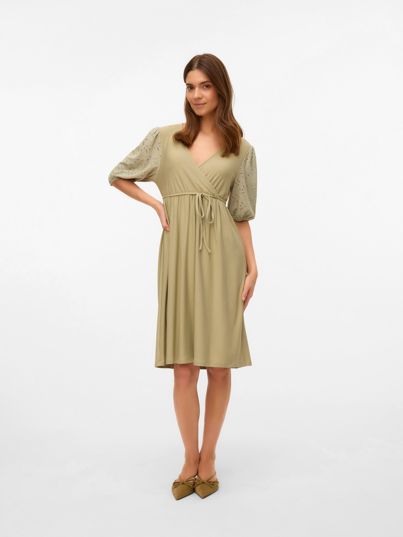 Dodajte udobje in barvo v svojo garderobo s prelepimi 2-v-1 oblekami za nosečnost in dojenje. - Vrsta izdelka : Obleka - Vrat : V-izrez - Rokav : 3/4 rokavi (3/4) - Dolžina/Velikost : Dolžina do kolen - Dodatne podrobnosti : Podložna plastična obloga pod učinkom zavitega - Prileganje : Običajno prileganje