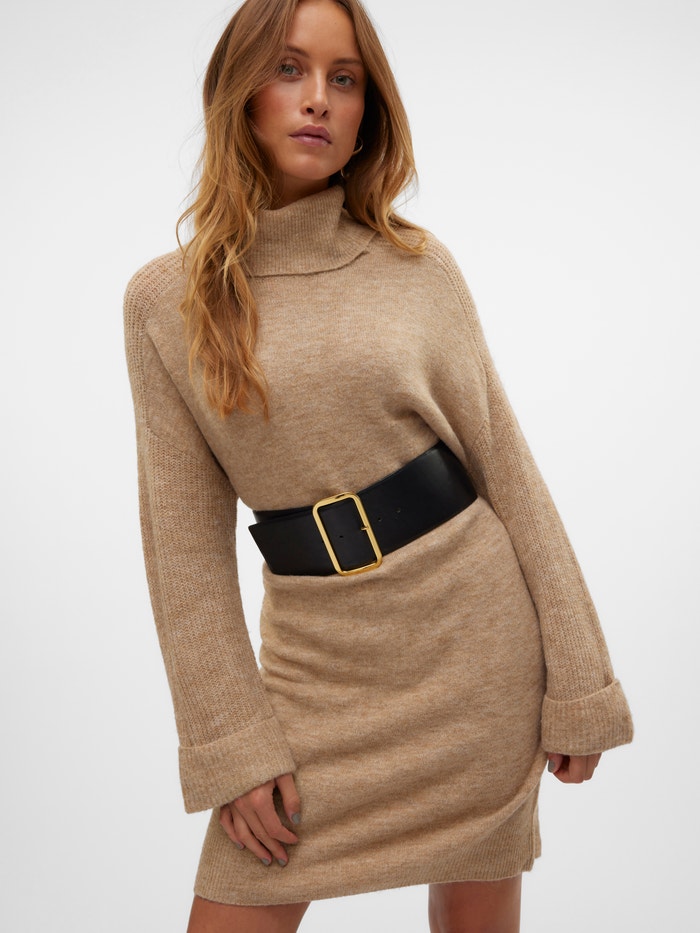 Udobnost nema ograničenja u pletenoj haljini. Sa ovim stilom dobijate klasičnu garderobu koja se mora imati za hladnije dane. Stilizujte ga sa parom hulahopki i dugim, zdepastim čizmama za moderan svakodnevni izgled. Jednostavno dodajte nekoliko cool dodataka, a vi ga lako transformisati u priliku-izgled.