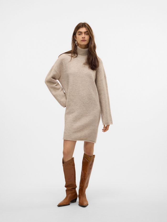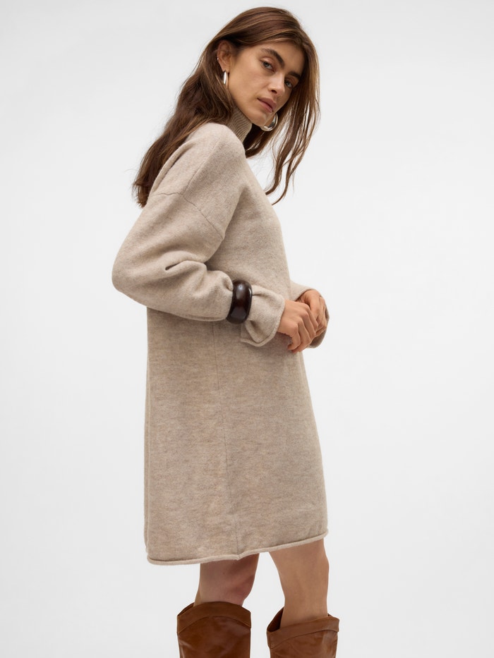 Comfortability has no limits in a knitted dress. With this style you get a classic wardrobe must-have for the colder days. Style it with a pair of tights and long, chunky boots for a modern everyday look. Simply add a few cool accessories, and you easily transform it into an occasion-look.