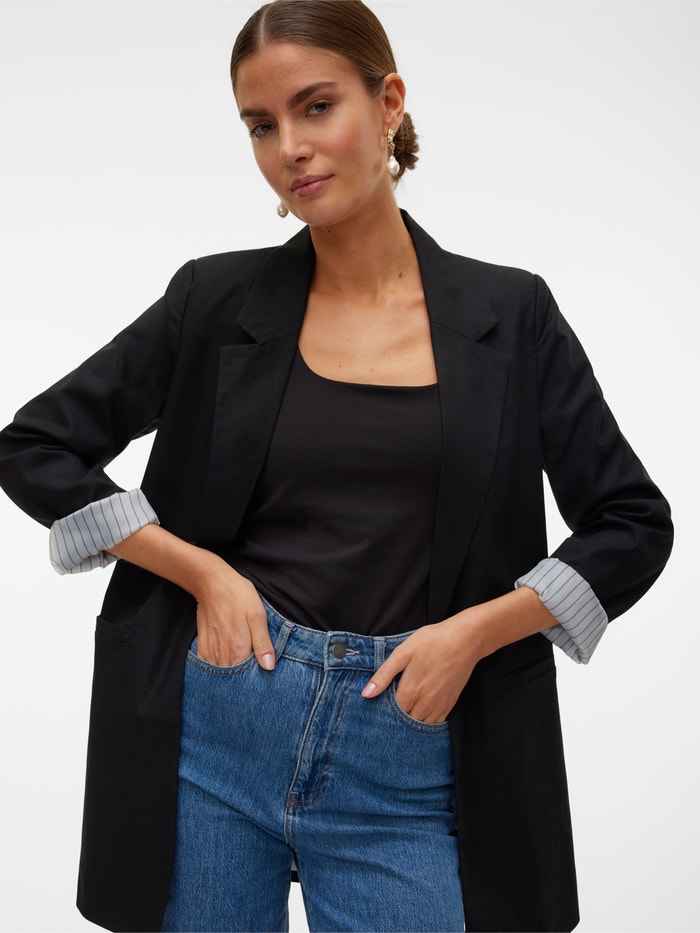 Sumnjate šta da obučete? Baci blejzer. Ovaj blejzer je vaš stilski go-to. Bez obzira da li ga nosite preko vrha jednostavne majice - blejzer uvek dodaje svoju sofisticiranost i klasu. Stilizujte ga širokim farmerkama i cipelama na petu za povišen svakodnevni izgled.