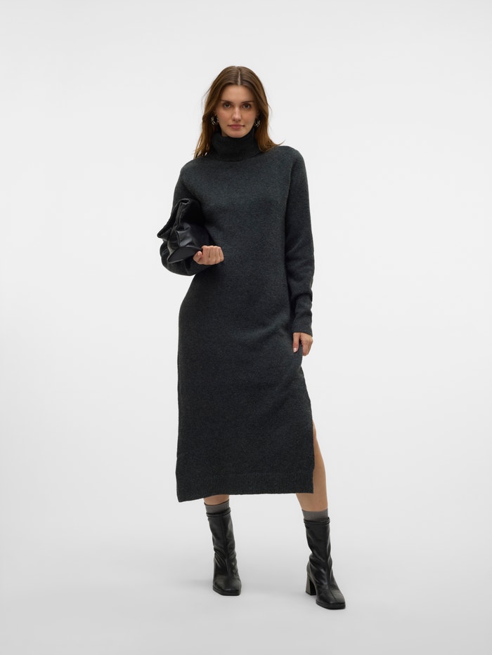 Udobnost nema ograničenja u pletenoj haljini. Sa ovim stilom dobijate klasičnu garderobu koja se mora imati za hladnije dane. Stilizujte ga sa parom hulahopki i dugim, zdepastim čizmama za moderan svakodnevni izgled. Jednostavno dodajte nekoliko cool dodataka, a vi ga lako transformisati u priliku-izgled.