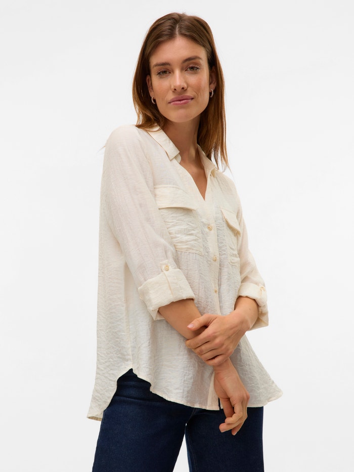 Ova košulja je šik i svestran dodatak vašoj garderobi, jer se može nositi samostalno, kao i koristiti otvoren sa jednostavnim vrhom ispod. Uparite ga sa klasičnim farmerkama i jednostavnom majicom za hladan svakodnevni izgled, ili ga oblačite dodavanjem pantalona i štikli.