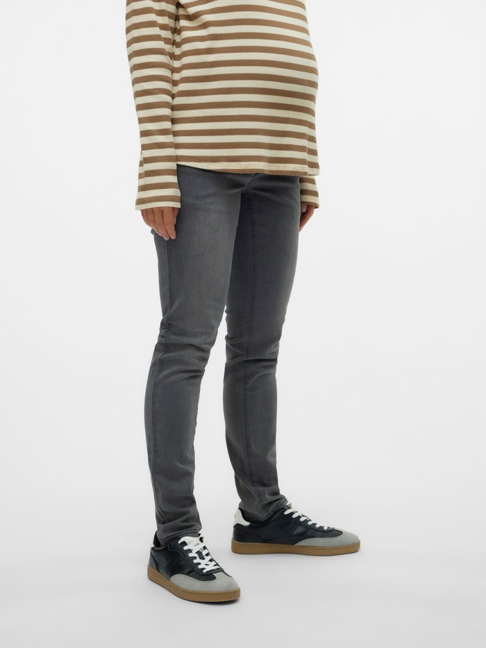 LADIES MATERNITY SLIM JEANS. WITH BUMPBAND ATTACHED TO BOTTOM OF WAISTBAND AND WITH ADJUSTABLE ELASTIC AND BUTTON INSIDE.