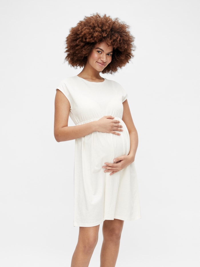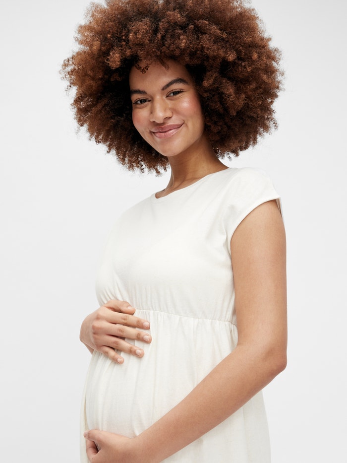 MATERNITY SLEEVELESS DRESS WITH LONG FOLDED SHOULDER