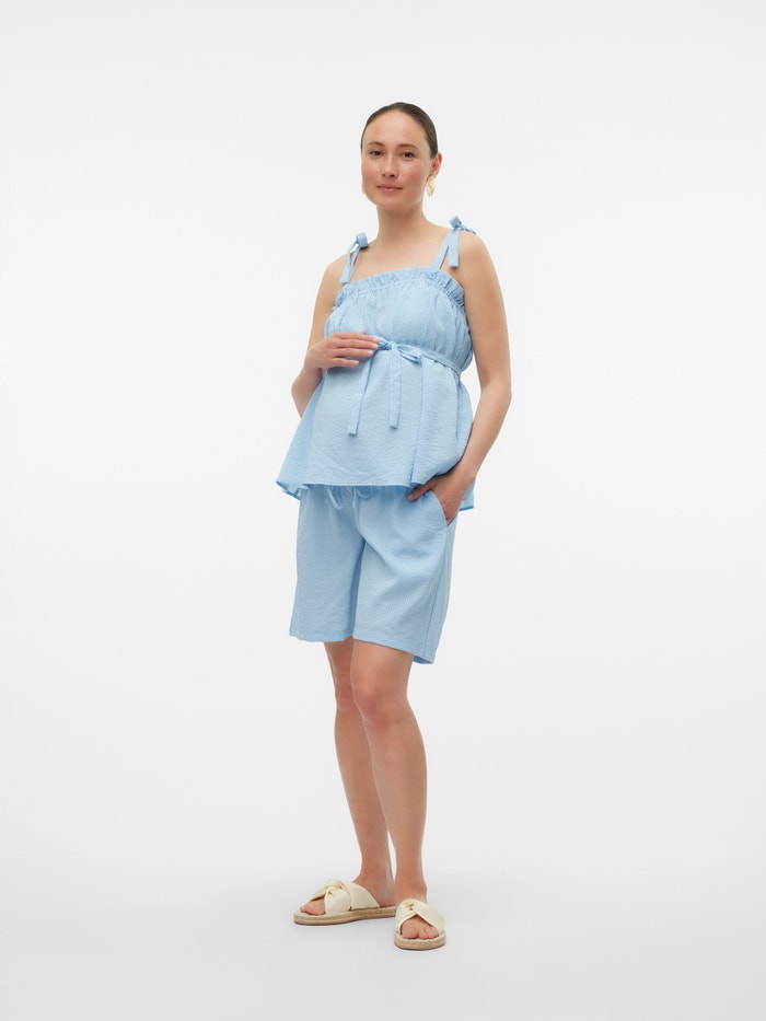 Kreirajte savršen letnji izgled sa garderobom koju morate imati - mekane i prozračne kratke hlače dizajnirane da se uklope u sve faze trudnoće, obezbeđujući bezvremenski izgled bez obzira na priliku.