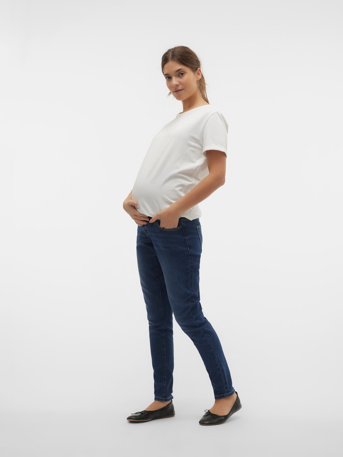 Ostanite hladni u paru porodiljskih farmerki dizajniranih da se uklope u sve faze trudnoće podržavajući vašu kvrgu elastičnom trakom.