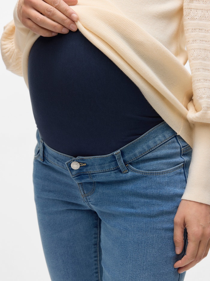 Ostanite hladni u paru porodiljskih farmerki dizajniranih da se uklope u sve faze trudnoće podržavajući vašu kvrgu elastičnom trakom.