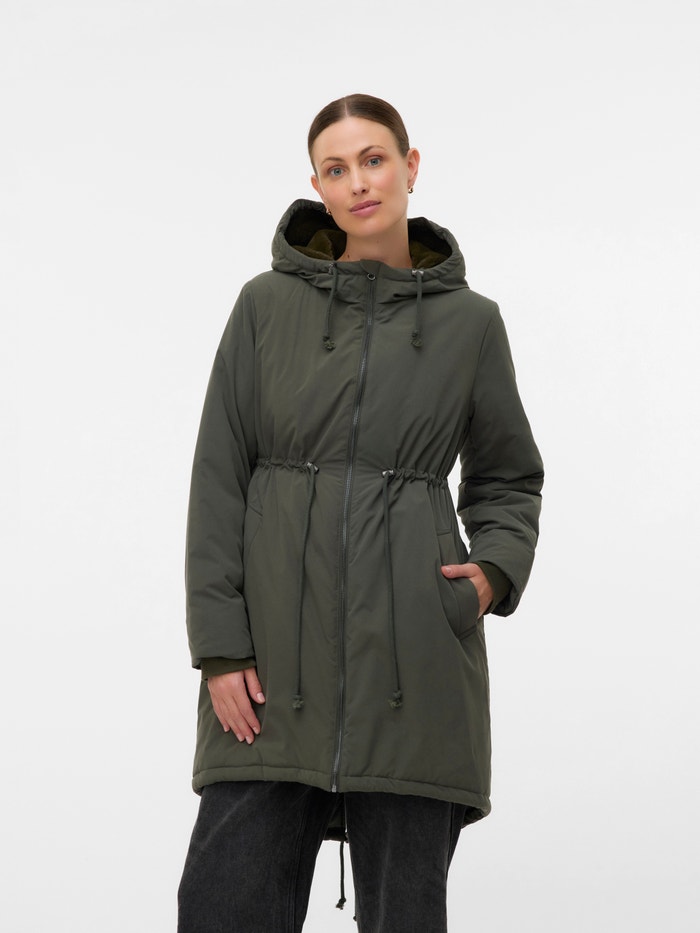 Hood w. Sintetičko krzno obloga Rebrasti manžetne Kaput