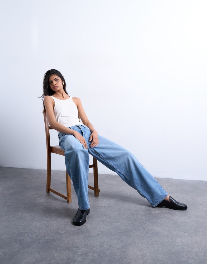 Široke farmerke su neophodna garderoba. Sa svojim opuštenim pristajanjem, oni donose opuštenu, bez napora hladnu ivicu bilo kojoj odjeći. Uparite ih sa oštrom Oksfordskom košuljom, osnovnom belom majicom ili slatkim blejzerom - sve ide uz ove farmerke.