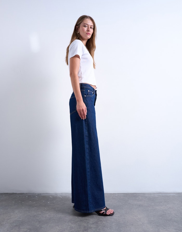 Široke farmerke su neophodna garderoba. Sa svojim opuštenim pristajanjem, oni donose opuštenu, bez napora hladnu ivicu bilo kojoj odjeći. Uparite ih sa oštrom Oksfordskom košuljom, osnovnom belom majicom ili slatkim blejzerom - sve ide uz ove farmerke.
