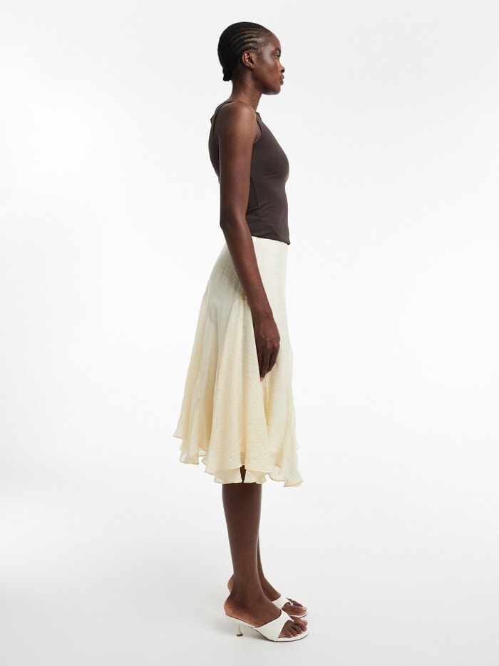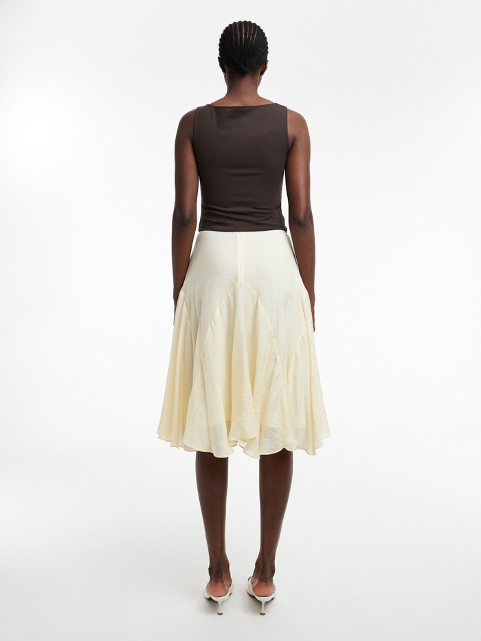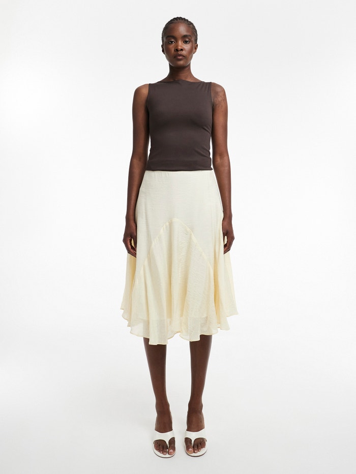 Ako dodajete samo jedan komad u svoju garderobu, neka to bude ovo! Midi suknja je klasična namirnica koja se savršeno slaže sa slatkom kravatom ili oštrim vrhom usjeva. Njegova midi dužina čini ga bez napora moderan dok vam omogućava da pokažete svoje omiljene patike ili balerine.