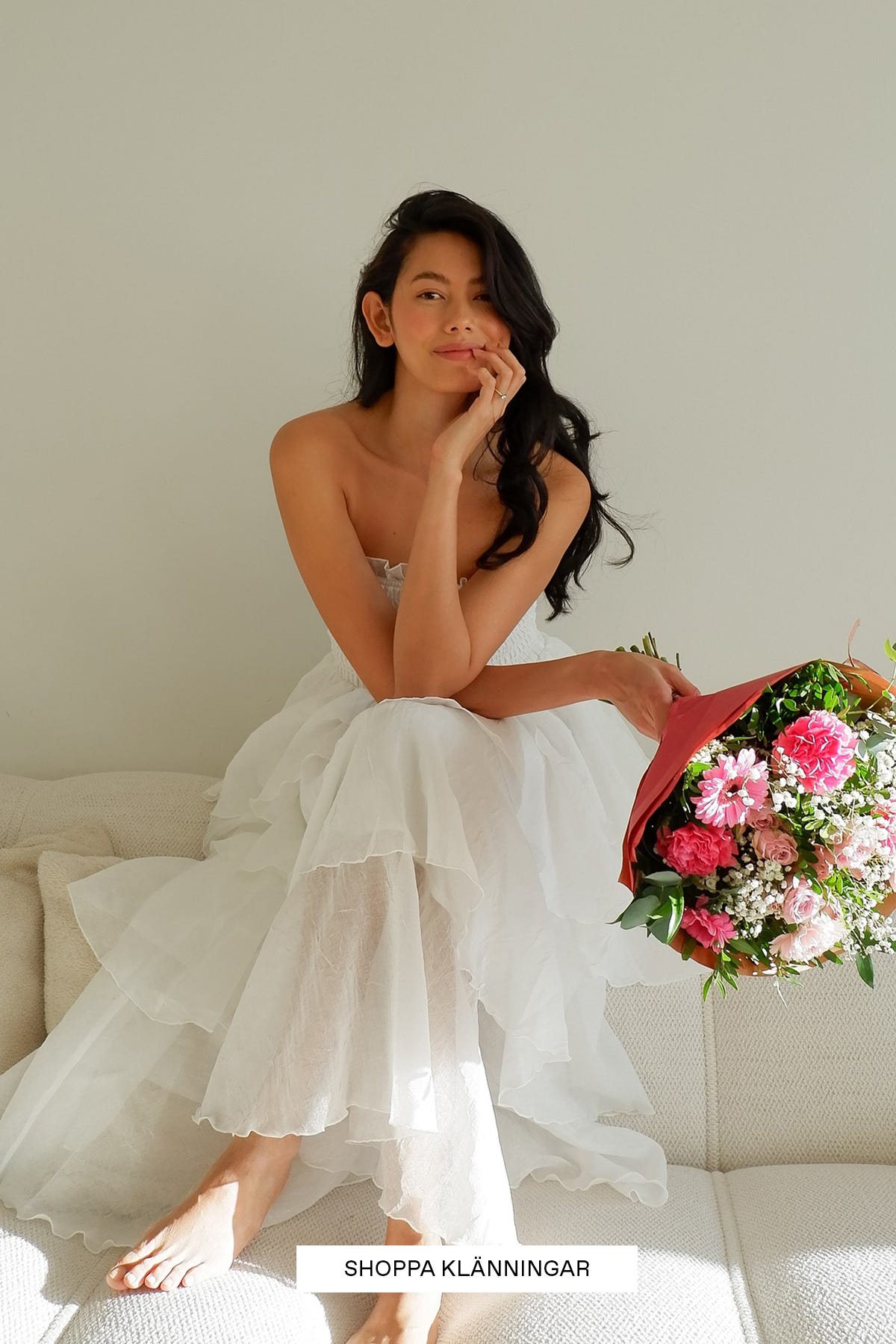 på stranden. Letar du efter en mer formell midsommarklänning? Då är en lång vit klänning det perfekta valet för att skapa en unik men elegant stil.