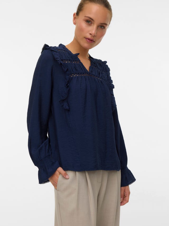 Toppar är ett enkelt sätt att göra sig redo för en ny årstid. Uppäck t-shirts, skjortor & andra basplagg på VERO MODA. Shoppa nu! Shoppa damtoppar ur ett suveränt urval av skjortor, T-shirts, toppar och blusar från VERO MODA. I kollektionen hittar du allt du behöver till höst- och vintergarderoben. Välkomna den nya säsongen i en långärmad blus eller en feminin spetstopp. Båda passar fint till
