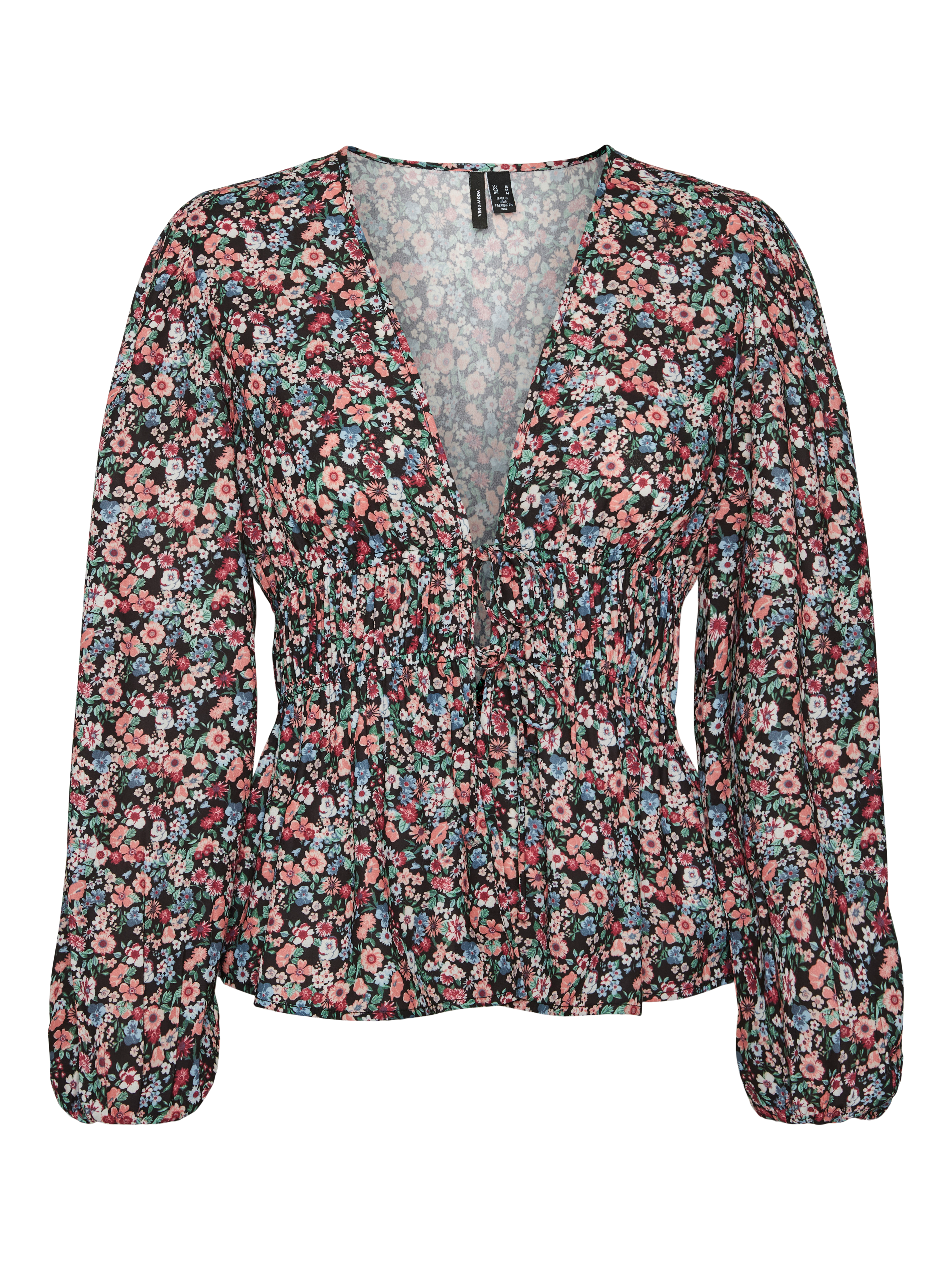 LDS. WOVEN. L/S TOP WITH TIW AT THE FRONT. SMOCK AT THE WAIST.