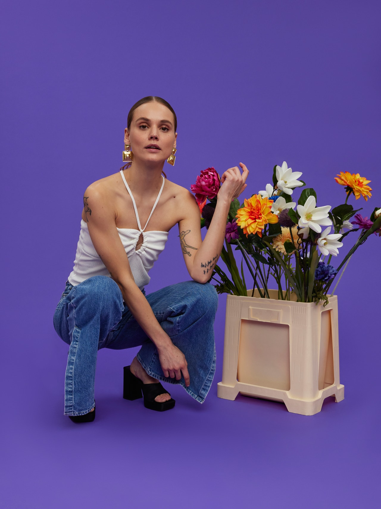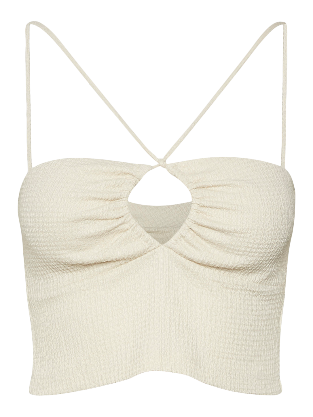 Singlet top with slim straps, scrunch detail in the front, cutlines by the chest. Style this gorgeous top with a pair of high waisted jeans and a pair of heels for a stunning party look.