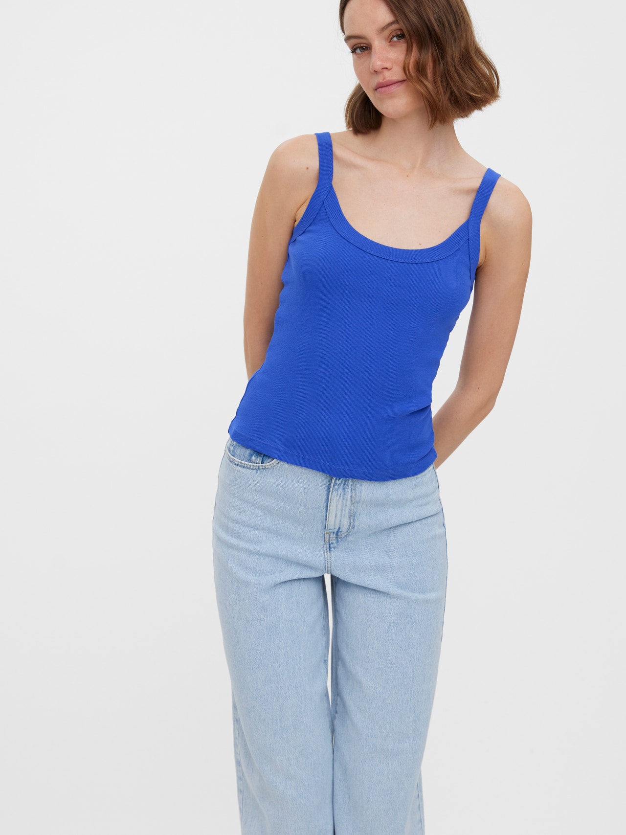 Basplagg hittas oundvikligen i alla garderober där ute. Våra bastoppar hjälper till att sätta ihop en outfit coh denna topp är inget undantag. Bär den med en skjortjacka ovanpå, ett par avslappnade mom-jeans och kraftiga kängor, så får du en avslappnad och cool vardagslook.
