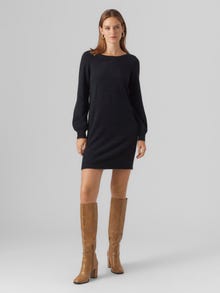 Denna klänning är det perfekta valet de dagar då det känns omöjligt att få ihop en outfit. Kombinationen av komfort och stil gör denna klänning till ett perfekt vardagsmåste. Styla upp eller ner den beroende på smak. - Produkttyp : Stickad klänning - Nacken : Båtringning - Manga : Långa ärmar - Mangas : Ballongärmar - Manschetter : Ribbmanschetter - Längd/storlek : Knälängd - Passform : Normal passform