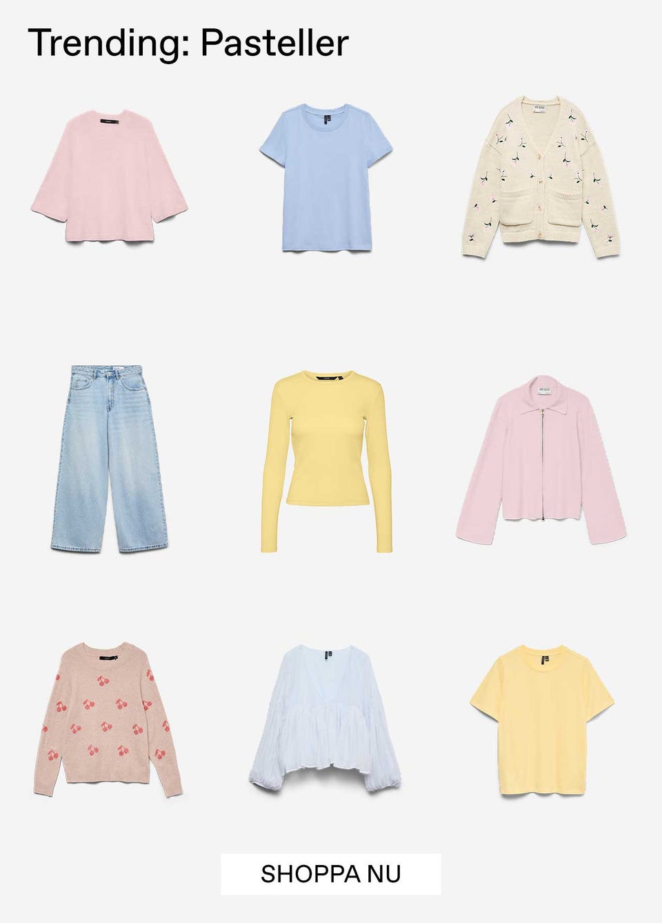 Hos VERO MODA har vi alla garderobs-måsten. Så, oavsett om du behöver en snygg [kavaj[(/sv-se/klaeder/kavajer), ett par enkla mom-jeans eller coola svarta stövlar, du hittar den här. Du kan också kolla in våra fantastiska erbjudanden, som ständigt uppdateras med rabatterade plagg. Eller gå med i vår kundklubb och håll dig uppdaterad om erbjudanden, få massor av inspiration och de senaste nyheterna.