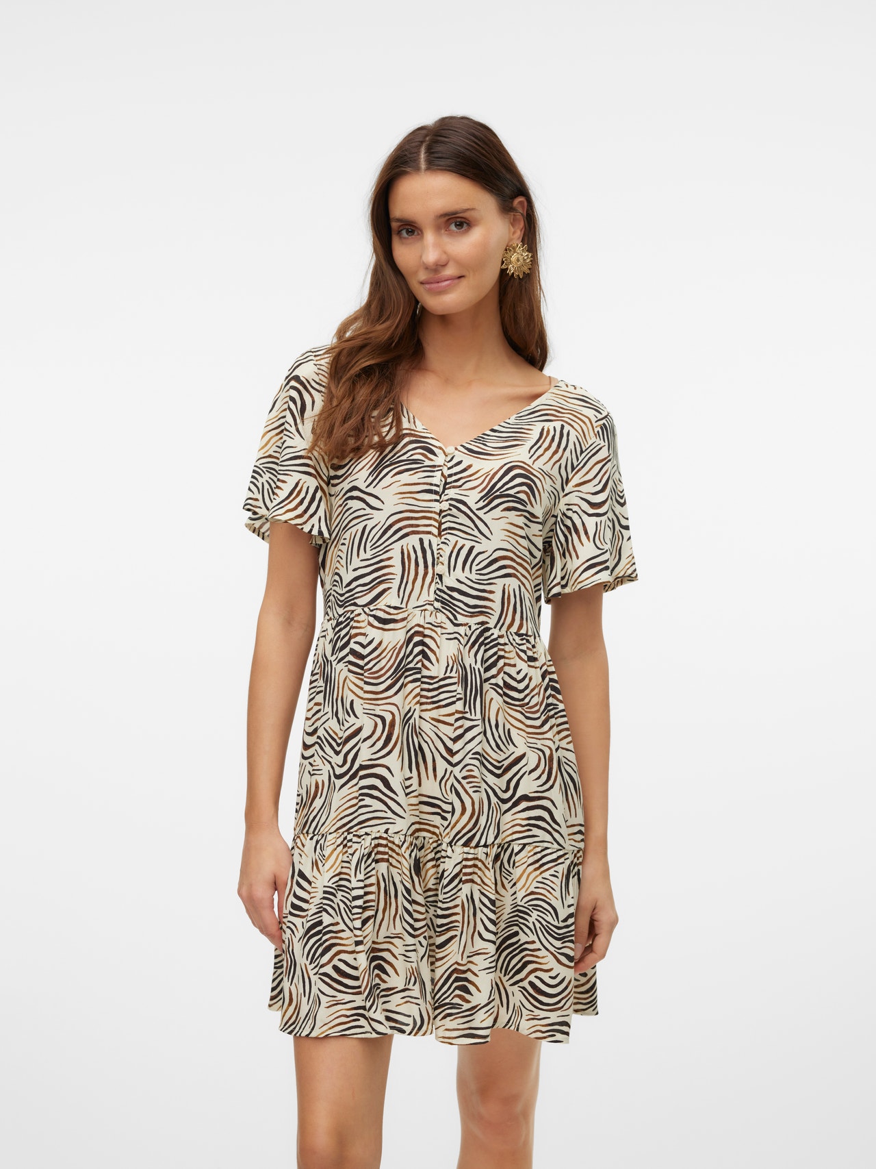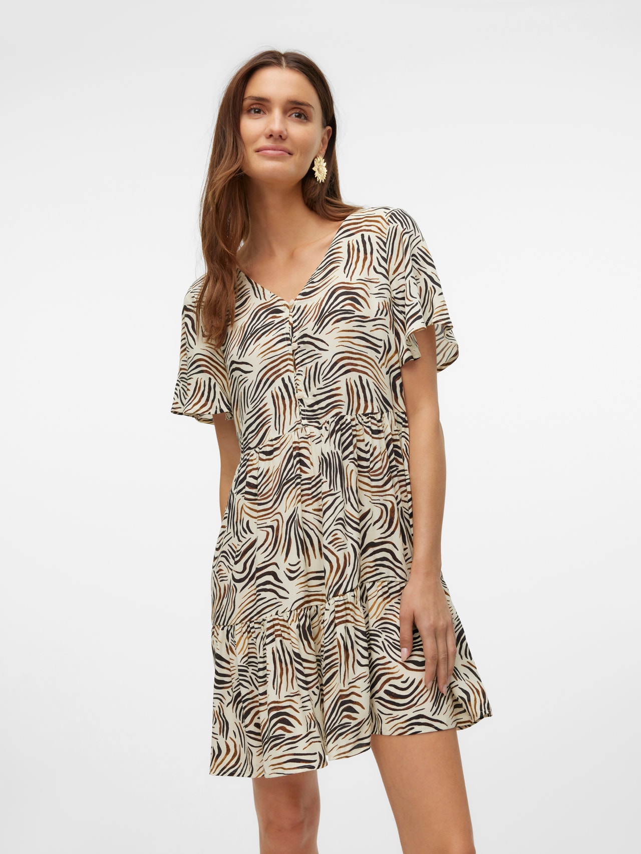 Denna klänning är det perfekta valet de dagar då det känns omöjligt att få ihop en outfit. Kombinationen av komfort och stil gör denna klänning till ett perfekt vardagsmåste. Styla upp eller ner den beroende på smak. - Produkttyp : Klänning - Nacken : Fyrkantig hals - Ärm : Korta ärmar - Stängning : Knappstängning - Passform : Normal passform