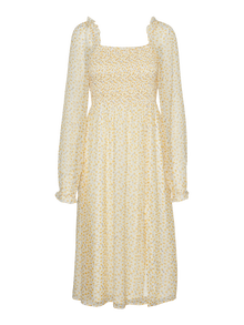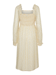 Blomstertryck lĂ€gger till precis rĂ€tt mĂ€ngd feminin touch till din look och gör den blomstertryckta klĂ€nningen till det perfekta tillĂ€gget till din sommargarderob. Om looken blir för söt kan du enkelt lĂ€gga till ett par coola sneakers för att tona ner den lite. Glöm inte dina favorittillbehör!. - Produkttyp : KlĂ€nning - Nacken : Fyrkantig hals - Ărm : LĂ„nga Ă€rmar - Ărmar : Rymliga Ă€rmar - Manschetter : Elastiska manschetter - Foder : Polyesterfoder för en ogenomskinlig look - Detaljer : Smockdetalj - Print : Trycket upprepas över hela produktens yta - Passform : Normal passform