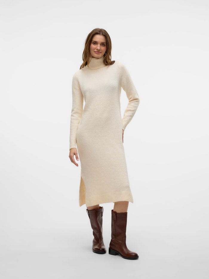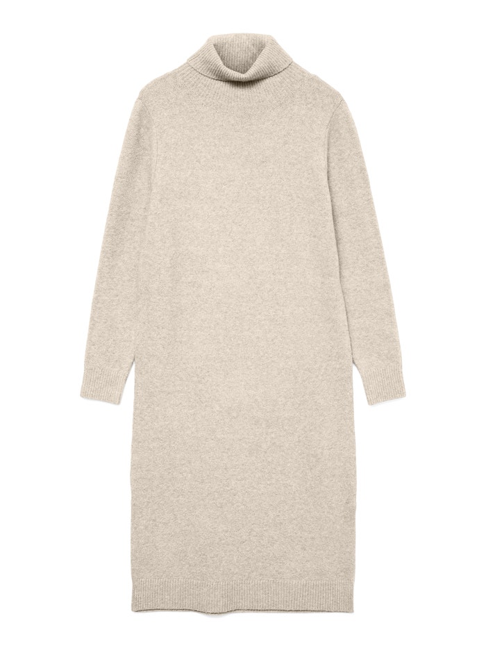 Bekvämligheten har inga gränser i en stickad klänning. Med detta plagg får du ett klassiskt garderobs-måste för de kallare dagarna. Styla den med ett par strumpbyxor och höga, kraftiga stövlar för en modern vardagslook. Lägg bara till några coola accessoarer, så förvandlar du det enkelt till en festlook.