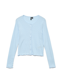 Letar du efter din nya, bästa vardagstopp? Vi har en idé. Den här toppen kommer lätt att bli ditt nya måste de dagar då du inte är på humör för något vilt, men ändå vill se trendig ut. Lägg till några smycken för det där extra gnistan eller håll det enkelt med en lätt jacka. - Produkttyp : Kofta - Nacken : O-ringning - Ärm : Långa ärmar - Stängning : Knappstängning - Detaljer : Babylockdetalj