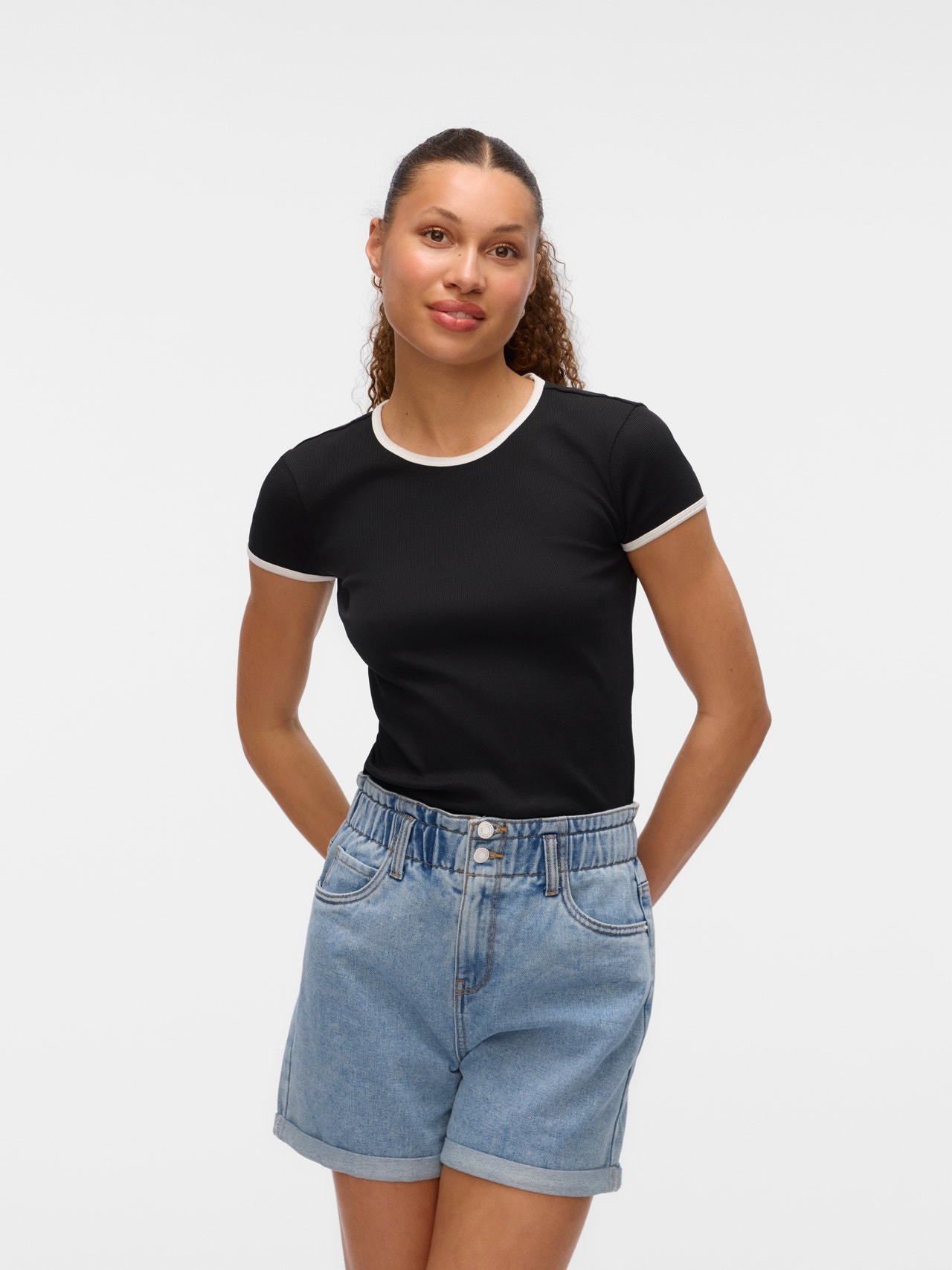 Om du är osäker, använd en T-shirt! Du kan aldrig gå fel med en T-shirt - ett perfekt val för en cool och tidlös look. Bär den här t-shirten med snygga boyfriend-jeans och lägg till ett par chunky sneakers för en urban city-look. - Produkttyp : T-shirt - Nacken : O-ringning - Ärm : Korta ärmar - Passform : Åtsittande passform