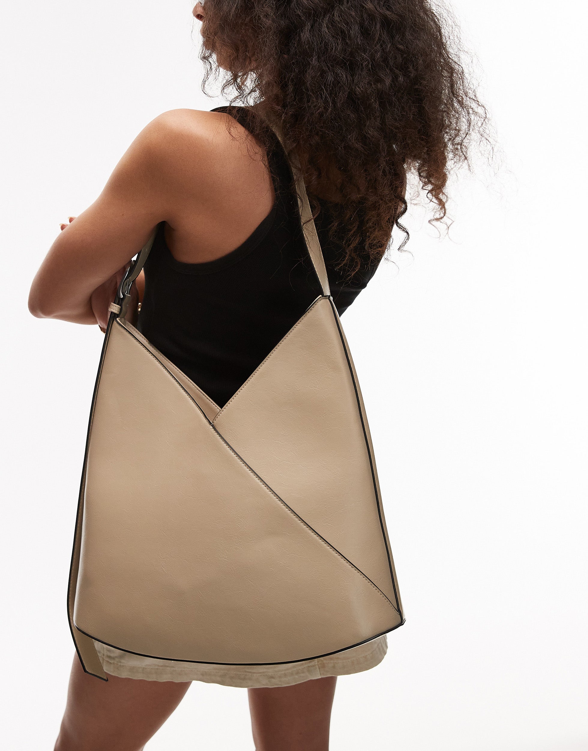 Topshop Thea V tote bag in cream - CREAM